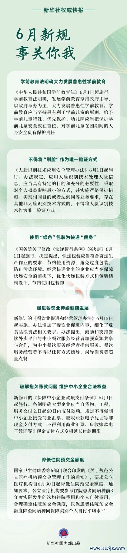 事关学前教育、“刷脸”识别、快递包装……6月起,一批事关你我的新规将施行。一起来看闪电策略,哪条你最关注?