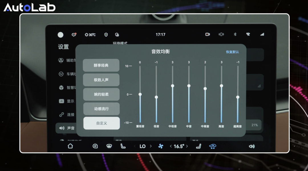 此外,我们之前见过的AI智慧声场在尚界H5这里是没有的红领金服,只能手动调节声场中心位置。
